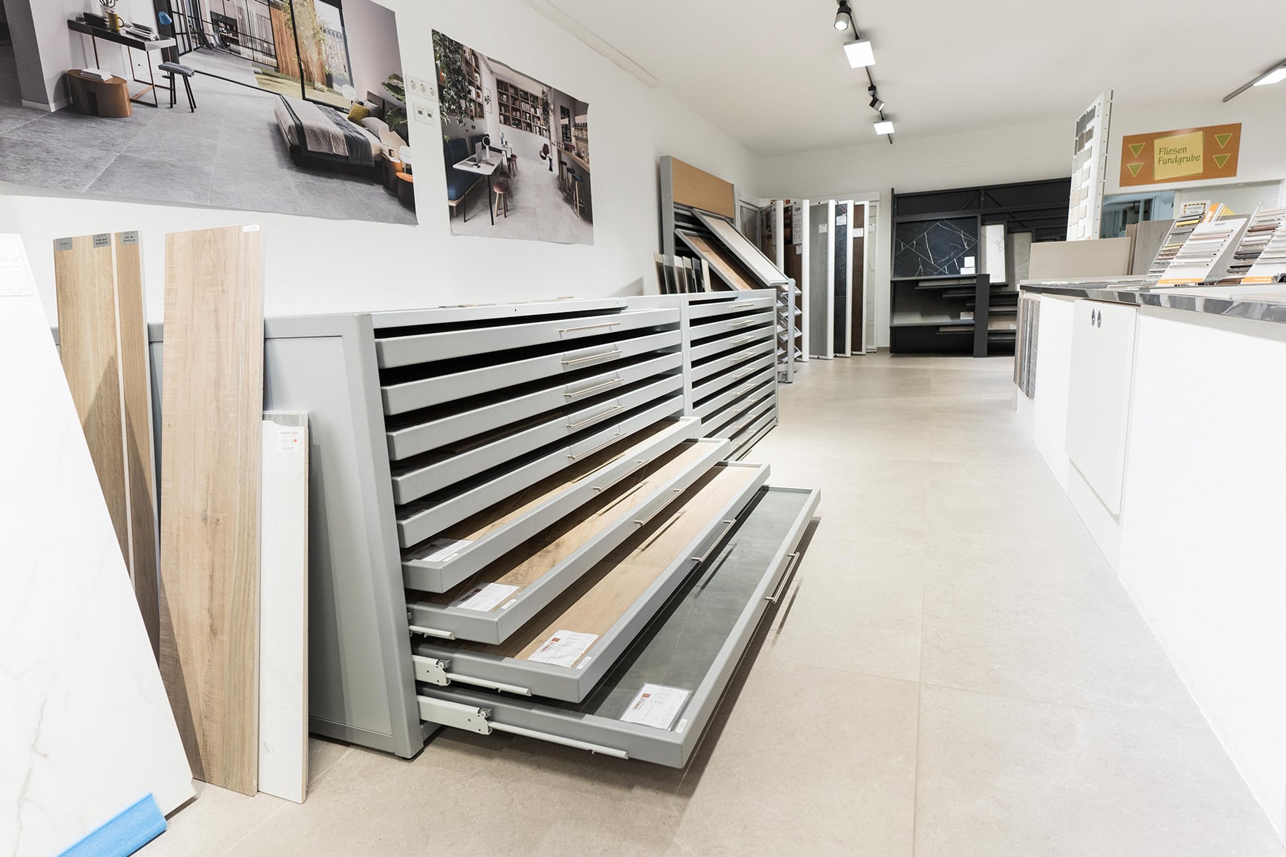 Unsere Ausstellung wird stets aktualisiert, damit Sie sich über die neuesten Trends gut informieren können. Nutzen Sie die Gelegenheit, in aller Ruhe Farben, Muster, Größen, Strukturen und Oberflächen direkt miteinander zu vergleichen. So können Sie sich mit allen Sinnen ein realistisches Bild von den Materialien machen, mit denen Sie sich Ihr eigenes Wohn- und Lebensumfeld am liebsten gestalten möchten.