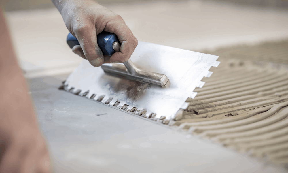 Sind alle Fliesen angebracht oder verlegt, verfugst du die Flächen, sodass sich ein ebenes und gestalterisch schönes Gesamtbild ergibt.