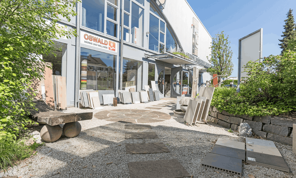 Bei uns in der Ronsbachstraße 34 in Fulda bieten wir Ihnen auf 700 m2 Ausstellungsfläche eine ausgesprochen umfangreiche Auswahl an Produkten und Materialmustern rund um das Thema „Schöner Wohnen & Leben mit Fliesen“. Zusätzlich sind auch im Außenbereich Musterflächen und Materialmuster angelegt und ausgestellt.