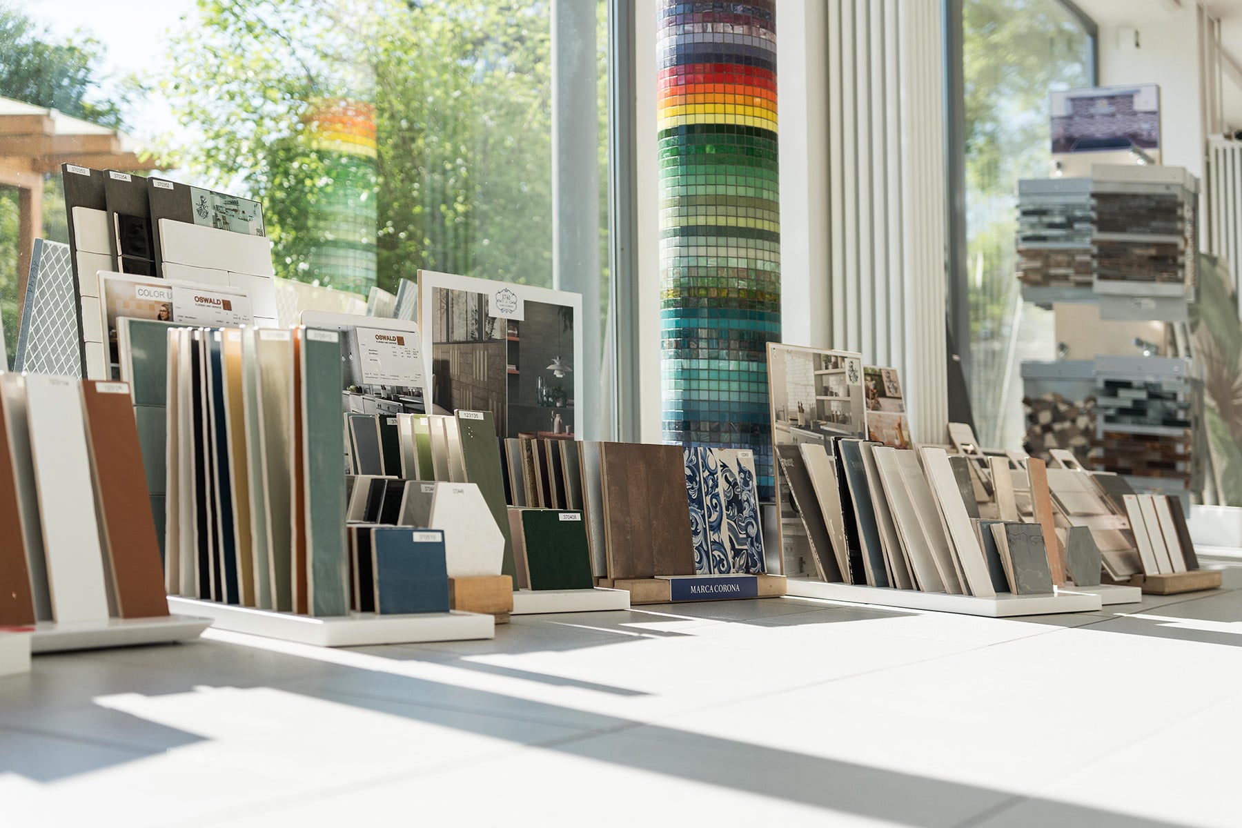 Unsere Ausstellung wird stets aktualisiert, damit Sie sich über die neuesten Trends gut informieren können. Nutzen Sie die Gelegenheit, in aller Ruhe Farben, Muster, Größen, Strukturen und Oberflächen direkt miteinander zu vergleichen. So können Sie sich mit allen Sinnen ein realistisches Bild von den Materialien machen, mit denen Sie sich Ihr eigenes Wohn- und Lebensumfeld am liebsten gestalten möchten.